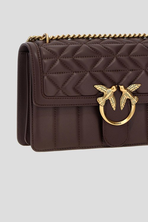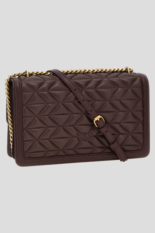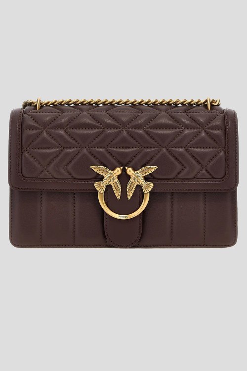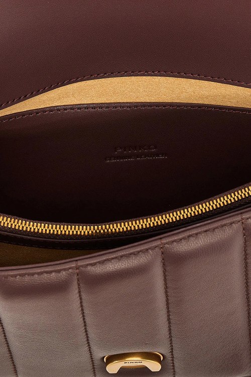 Детали: Женская шоколадная кожаная сумка кросс-боди Love Bag от Pinko (Пинко). Модель из гладкой кожи, стеганый дизайн, логотип Love Birds, золотистая фурнитура, застежка на магнит, одно отделение, цепочка на плечо. Размеры: ширина - 27 см, высота - 17 см, глубина - 8 см, максимальная длина плечевой цепочки 116 см