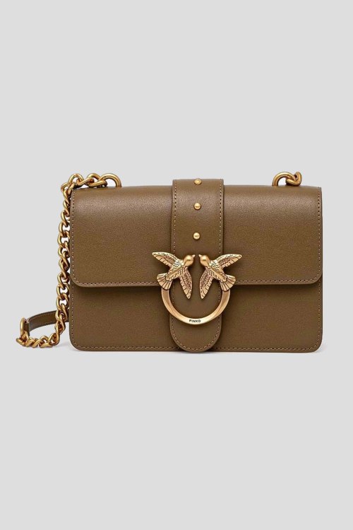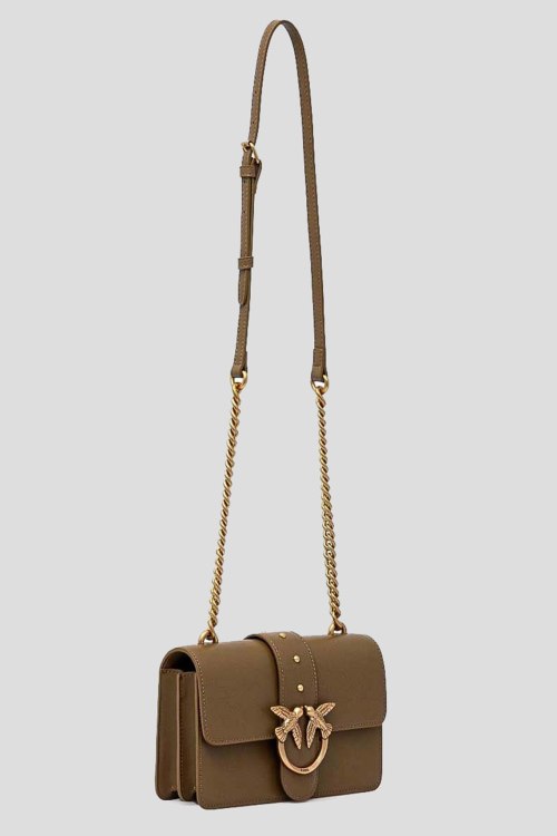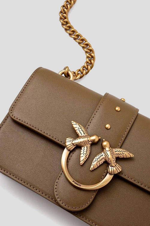 Детали: Женская коричневая кожаная сумка кросс-боди Mini Love Bag One от Pinko (Пинко). Модель из гладкой кожи, значок Love Birds, золотистая фурнитура, застежка на магнит, два отделения, регулируемый плечевой ремень с цепочкой. Минимальная длина ремня: 100 см. Максимальная длина ремня: 110 см. Размеры: глубина: 6 см, высота: 12,5 см, ширина у основания: 21 см