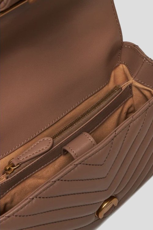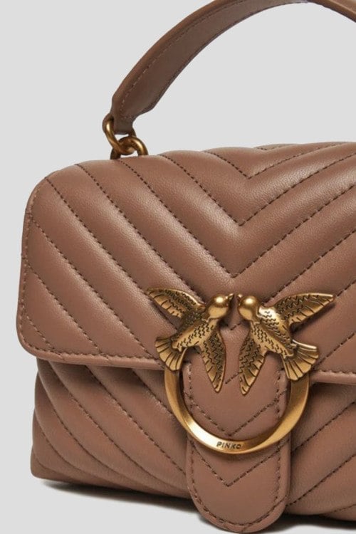 Женская коричневая кожаная сумка кросс-боди Lady Love Bag Puff от Pinko (Пинко). Модель из гладкой кожи, стеганый дизайн, логотип Love Birds, круглая ручка, плечевой ремень с цепочкой, застежка на магнит, одно отделение. Размеры: 26 х 17 х 8 см