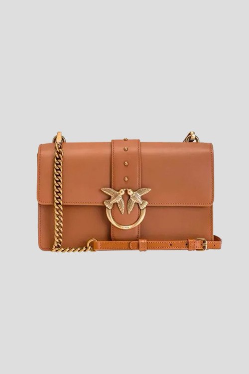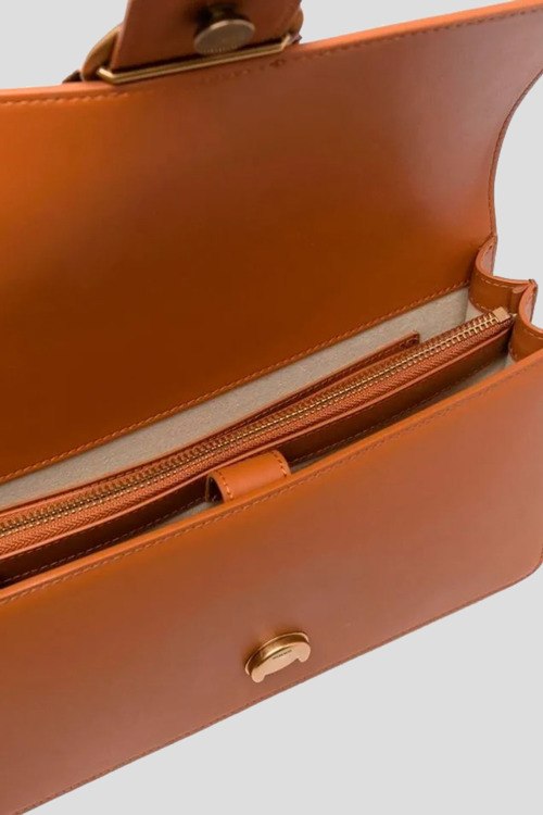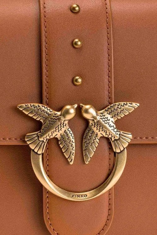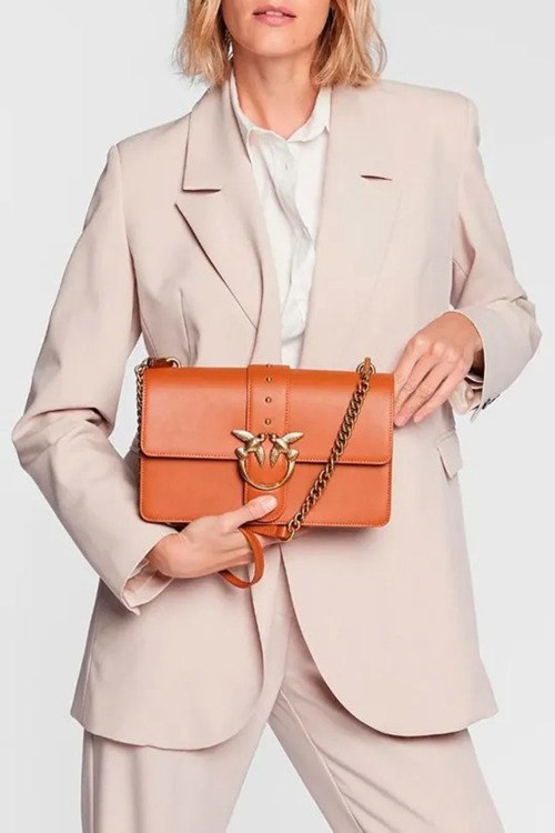 Детали: Женская рыжая кожаная сумка кросс-боди Love One Classic от Pinko (Пинко). Модель из гладкой кожи, логотип Love Birds, декор заклепками, золотистая фурнитура, застежка на магнит, одно отделение, цепочка на плечо. Размеры: 27 x 17 x 7 см