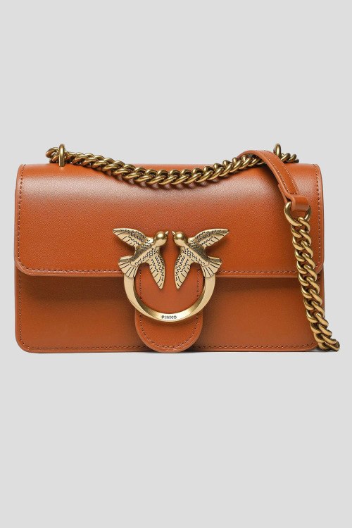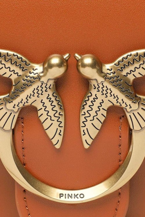 Детали: Женская рыжая кожаная сумка кросс-боди Mini Love Bag One Simply от Pinko (Пинко). Модель из гладкой кожи, логотип Love Birds, золотистая фурнитура, застежка на магнит, одно отделение, цепочка на плечо. Размеры: высота: 13 см, ширина: 8 см, длина: 21 см