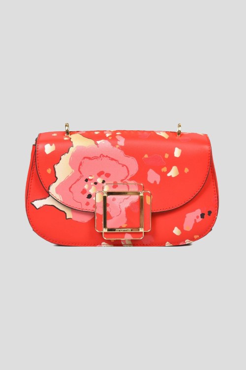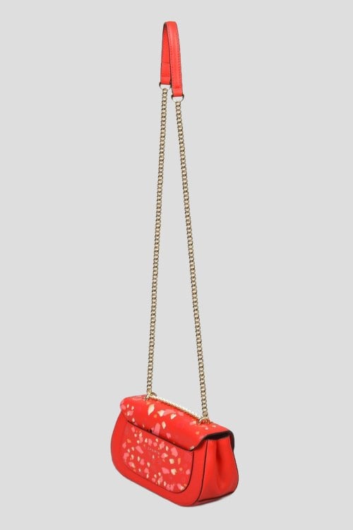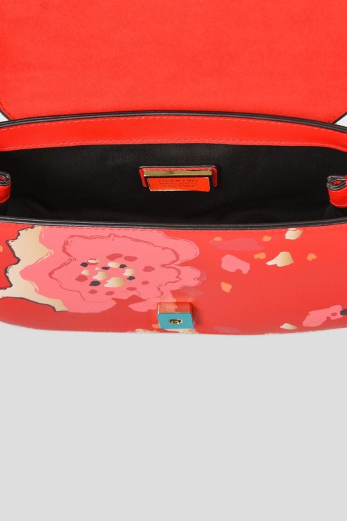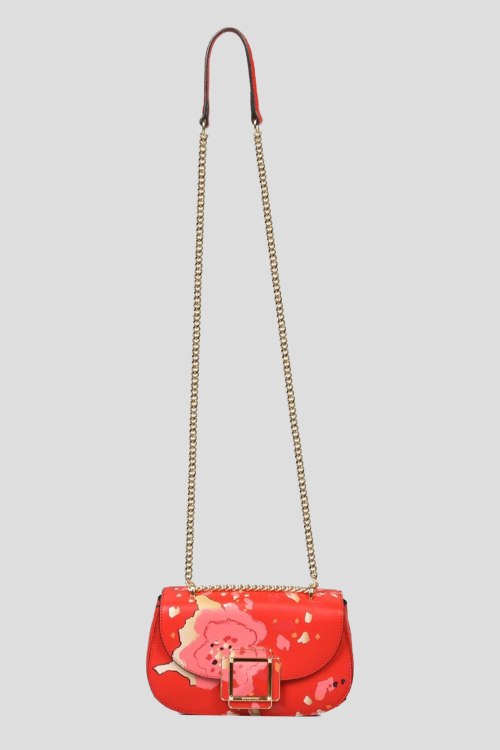 Детали: Женская красная кожаная сумка кросс-боди от Cromia (Кромиа). Модель из гладкой кожи, принт по всей поверхности, застежка на магнит, одно отделение, плечевой ремень с цепочкой. Размеры: высота: 12 см, ширина: 21 см, ширина по дну: 8 см