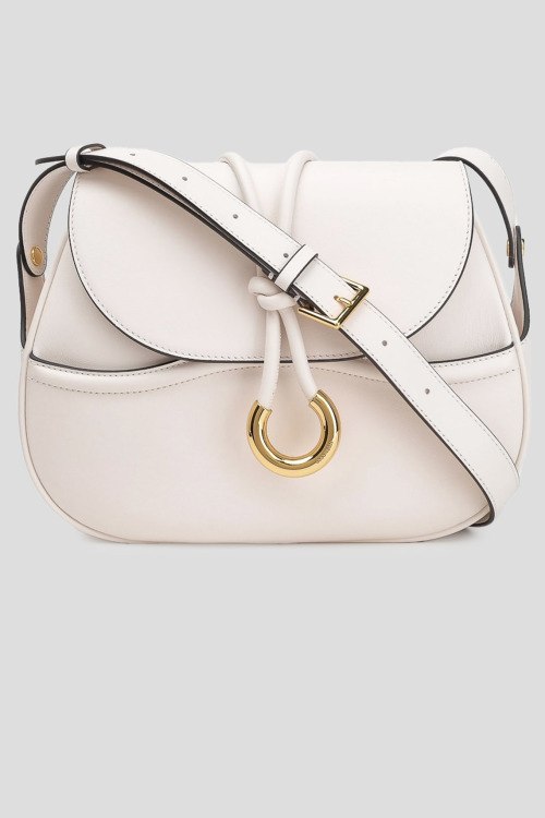 Детали: Женская кожаная сумка кросс-боди молочного оттенка от Coccinelle (Кочинелле). Модель из гладкой кожи, золотистая фурнитура, регулируемый плечевой ремень, застежка на магнит, одно отделение