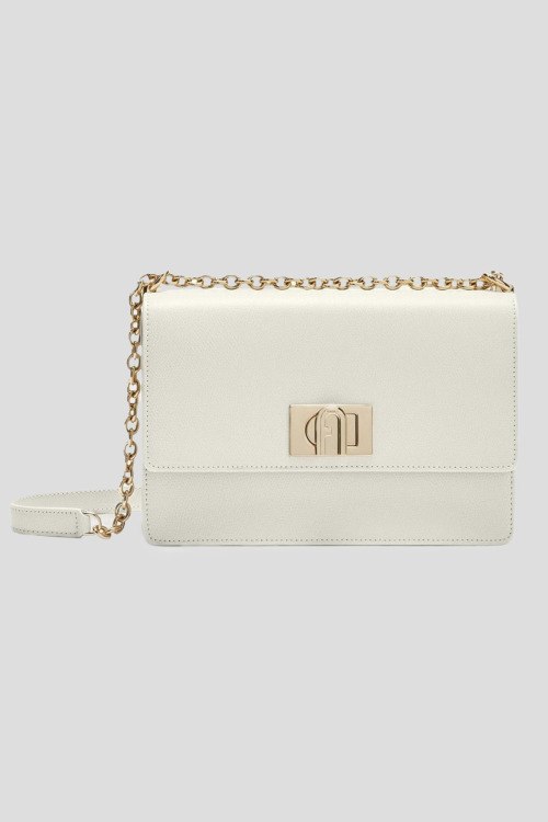 Детали: Женская кожаная сумка кросс-боди молочного оттенка 1927 от Furla (Фурла). Модель из зернистой кожи, золотистая фурнитура, застежка на поворотный замок, одно отделение, цепочка на плечо. Размеры: 28 х 18,5 х 10 см