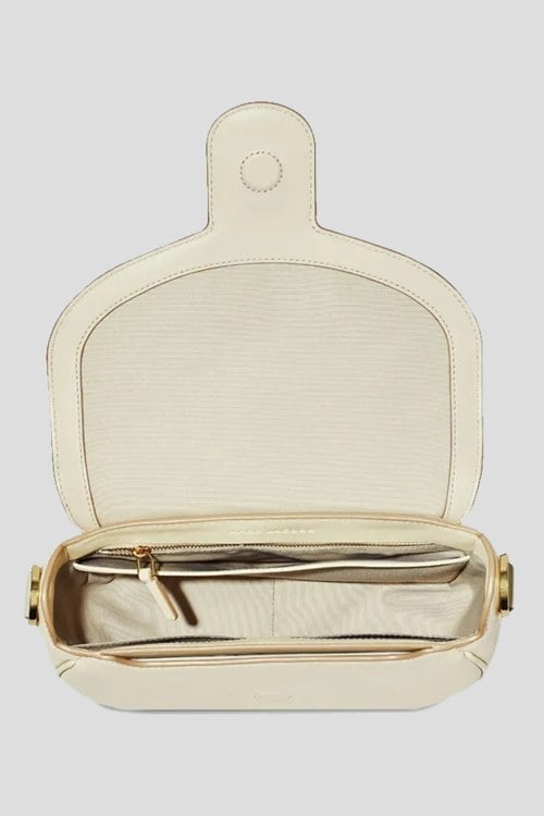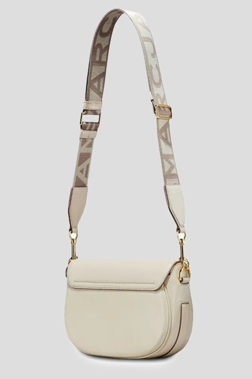 Детали: Женская кремовая кожаная сумка кросс-боди The Covered J Marc Small Saddle Bag от Marc Jacobs (Марк Джейкобс). Модель из гладкой кожи, значок логотипа, золотистая фурнитура, брендированный плечевой ремень, застежка на магнит, одно отделение. Размеры: 16 x 7 х 21 см