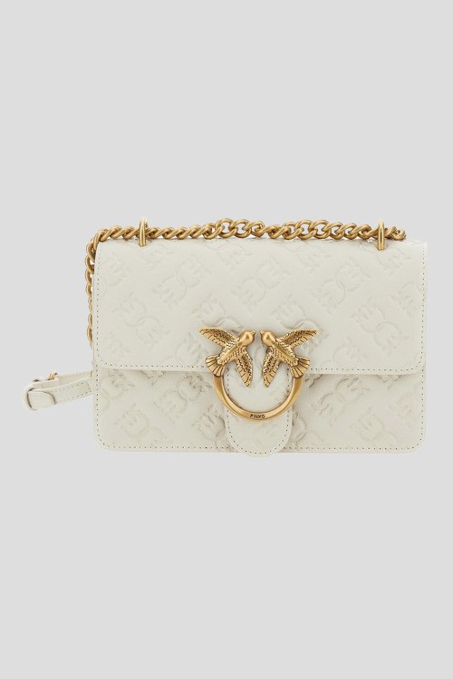 Детали: Женская кожаная сумка кросс-боди молочного оттенка Love Bag Mini от Pinko (Пинко). Модель из гладкой кожи, тиснение с монограммой по всей поверхности, логотип Love Birds, золотистая фурнитура, застежка на магнит, одно отделение, цепочка на плечо. Размеры: длина - 21 см, высота - 14 см, ширина - 10 см, максимальная длина цепочки - 110 см