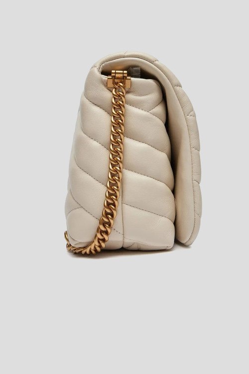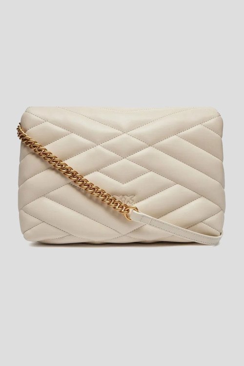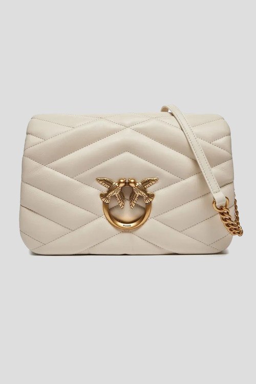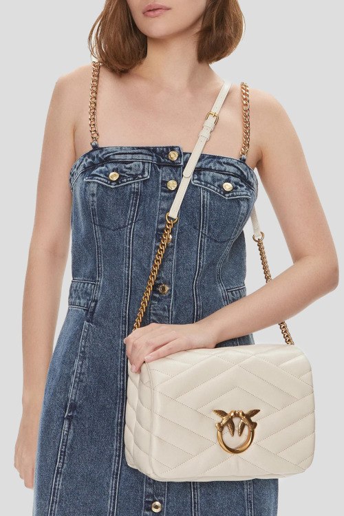 Детали: Женская кожаная сумка кросс-боди молочного оттенка Classic Love Bag Click Puff от Pinko (Пинко). Модель из гладкой кожи, стеганый дизайн, логотип Love Birds, золотистая фурнитура, застежка на магнит, одно отделение, цепочка на плечо. Размеры: 28 х 18 х 10 см