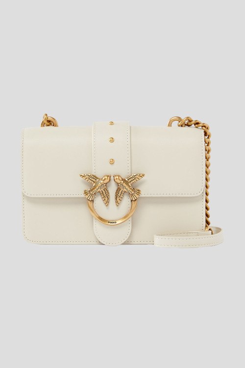 Детали: Женская кожаная сумка кросс-боди молочного оттенка Love One Simply от Pinko (Пинко). Модель из гладкой кожи, логотип Love Birds, декор заклепками, золотистая фурнитура, застежка на магнит, одно отделение, цепочка на плечо. Размеры: 21 x 6 x 14 см