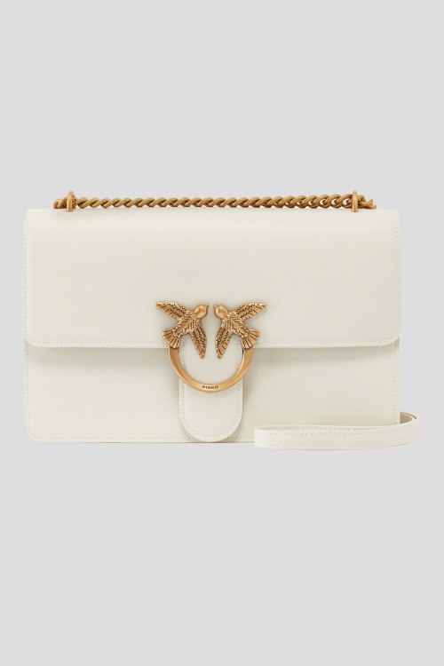 Детали: Женская сумка кросс-боди из экокожи молочного оттенка Love Bag One Simply от Pinko (Пинко). Модель из гладкой кожи, логотип Love Birds, золотистая фурнитура, застежка на магнит, одно отделение, цепочка на плечо. Размеры: Размеры: 27 х 17 х 7 см