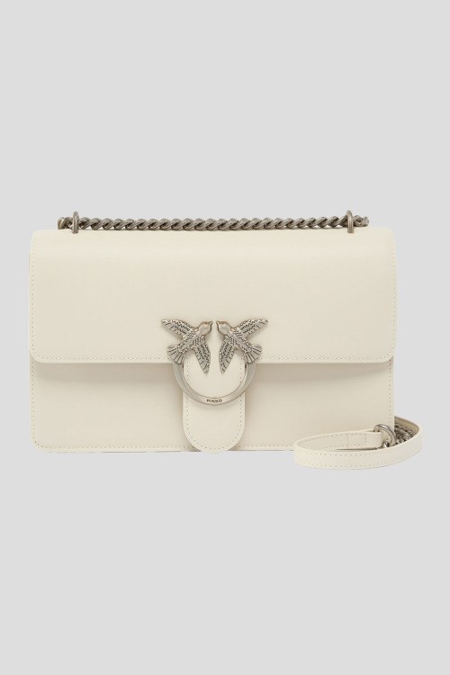 Детали: Женская сумка кросс-боди из экокожи молочного оттенка Love Bag One Simply от Pinko (Пинко). Модель из гладкой кожи, логотип Love Birds, серебристая фурнитура, застежка на магнит, одно отделение, цепочка на плечо. Размеры: Размеры: 27 х 17 х 7 см