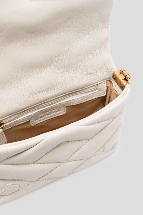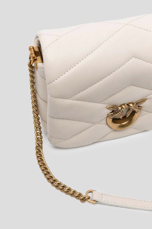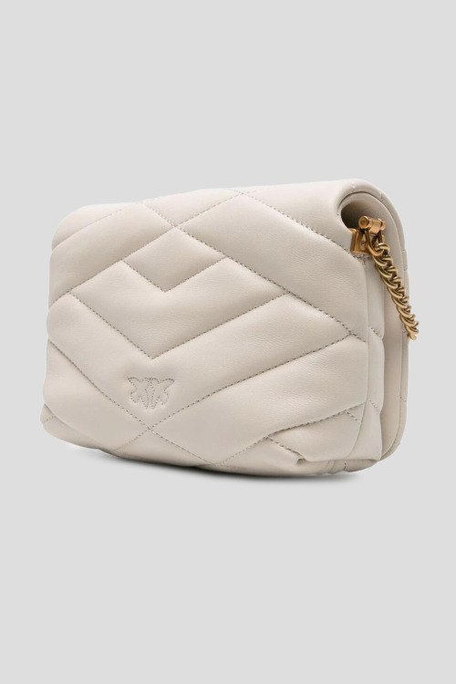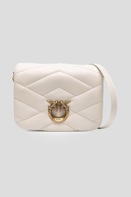 Детали: Женская кожаная сумка кросс-боди молочного оттенка Baby Love Bag Puff от Pinko (Пинко). Модель из гладкой кожи, стеганый дизайн, логотип Love Birds, золотистая фурнитура, застежка на магнит, одно отделение, цепочка на плечо. Размеры: 18 x 7 x 13 см