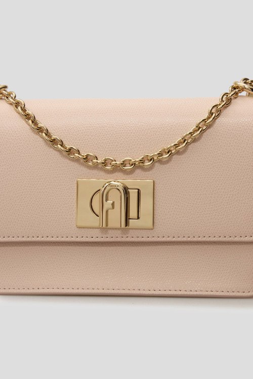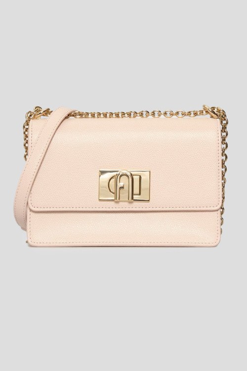 Детали: Женская пудровая кожаная сумка кросс-боди 1927 от Furla (Фурла). Модель из зернистой кожи, золотистая фурнитура, застежка на поворотный замок, одно отделение, цепочка на плечо. Размеры: 20 х 12 х 7 см