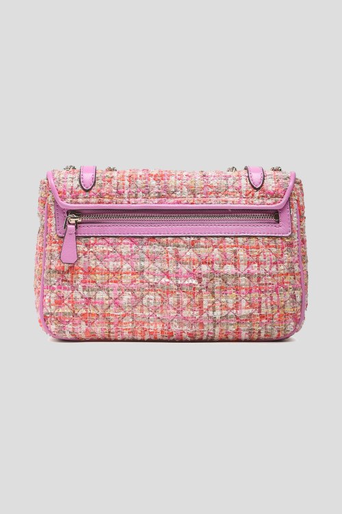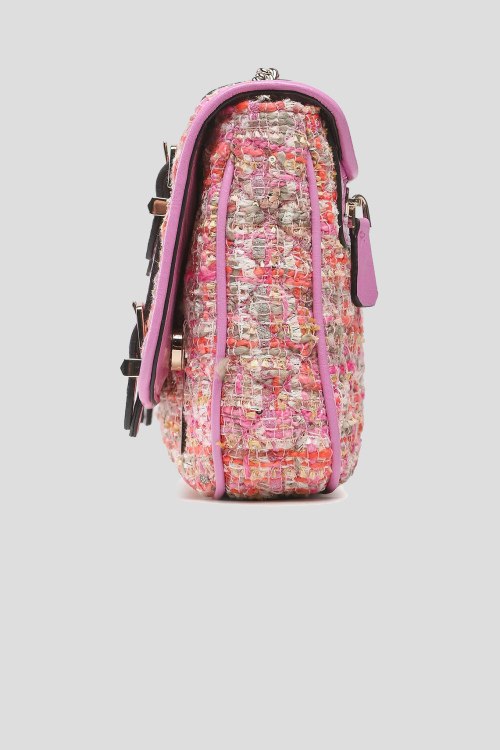 Детали: Женская твидовая розовая сумка кросс-боди Adam от Guess (Гесс). Значок с логотипом, золотистая фурнитура, два ремешка с пряжками, плечевая цепочка, застежка на магнит, одно отделение. Размер: 26X17X8 см. Высота ручки/ремня: 32/55 см