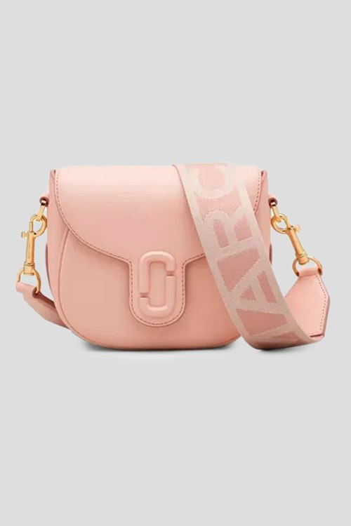 Детали: Женская пудровая кожаная сумка кросс-боди The Covered J Marc Small Saddle Bag от Marc Jacobs (Марк Джейкобс). Модель из гладкой кожи, значок логотипа, золотистая фурнитура, брендированный плечевой ремень, застежка на магнит, одно отделение. Размеры: 16 x 7 х 21 см