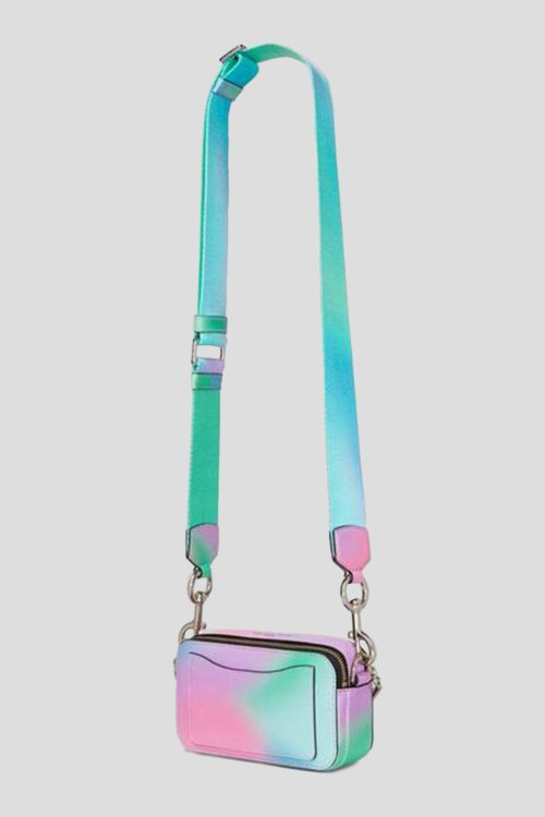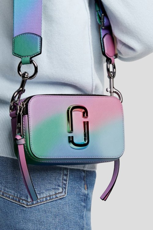 Детали: Женская кожаная сумка кросс-боди The Snapshot Airbrush 2.0 от Marc Jacobs (Марк Джейкобс). Модель из гладкой кожи, градиентная расцветка, значок логотипа, серебристая фурнитура, застежка-молния, одно отделение, широкий съемный плечевой ремень. Размеры: 18 х 11 х 6 см