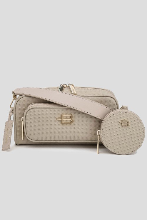 Детали: Женская светло-серая кожаная сумка кросс-боди от Baldinini (Балдинини). Значок с логотипом, золотистая фурнитура, съемный кошелек, накладной карман на молнии, застежка-молния, одно отделение, регулируемый плечевой ремень