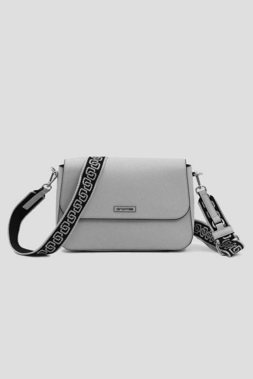 Женская светло-серая кожаная сумка кросс-боди от Cromia (Кромиа). Нашивка с логотипом, серебристая фурнитура, застежка на магнит, одно отделение, регулируемый плечевой ремень. Размеры: 26 х 18 х 9 см