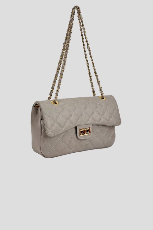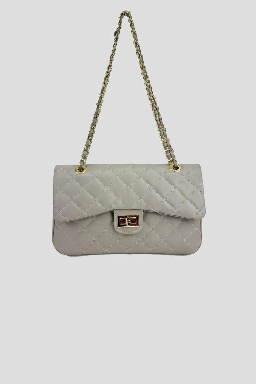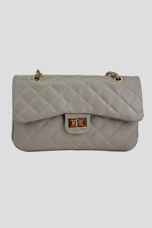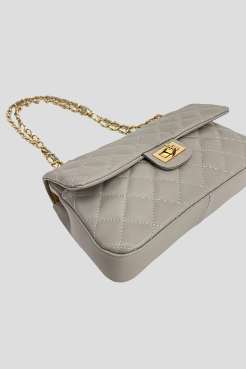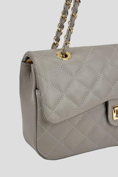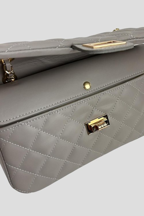 Детали: Женская серая сумка кросс-боди из натуральной кожи от Firenze Italy (Фирензе Итали). Стеганый дизайн, модель с клапаном, два кармана, регулируемая ручка из цепочки и кожи. Измерения:28 x 15 x 6,5 см