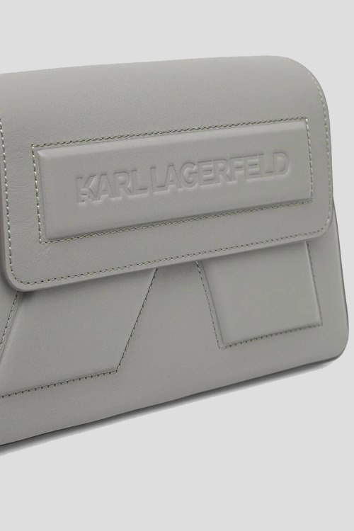 Детали: Женская серая кожаная сумка кросс-боди Ikon/K Soft Webbing от Karl Lagerfeld (Карл Лагерфельд). Модель из гладкой кожи, тиснение логотипа, серебристая фурнитура, застежка на магнит, одно отделение, брендированный плечевой ремень. Размеры: 25 х 13,5 х 6 см