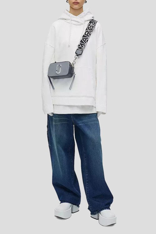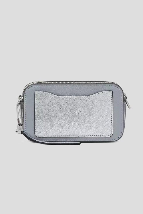 Детали: Женская серая кожаная сумка кросс-боди The Snapshot от Marc Jacobs (Марк Джейкобс). Значок логотипа, серебристая фурнитура, застежка-молния, одно отделение, съемный брендированный плечевой ремень. Размеры: 18 х 11 х 6 см