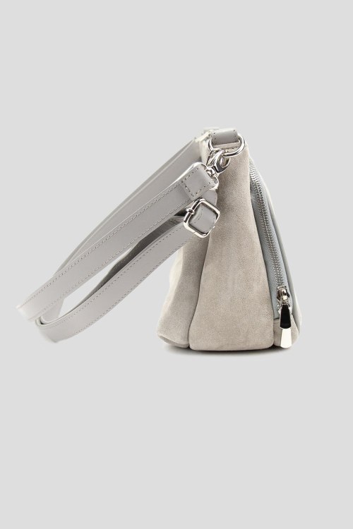Детали: Женская серая сумка кросс-боди из замши от Tavinchi (Тавинчи). Одно отделение, застежка на молнию, внешний карман на молнии, регулируемый плечевой ремень, логотип бренда. Размер 28 x 19 x 10 см