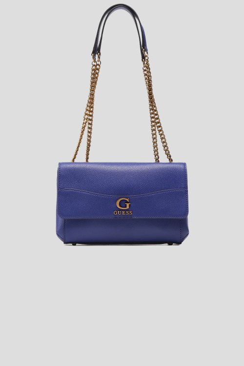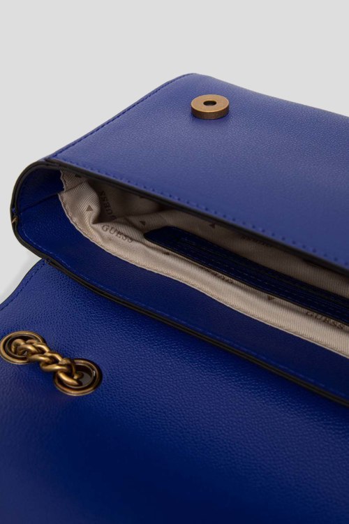 Детали: Женская синяя сумка кросс-боди из экокожи Nell Convertible от Guess (Гесс). Модель из зернистой кожи, значок с логотипом, золотистая фурнитура, ручка-цепочка на плечо, застежка на магнит, одно отделение. Размер: 26X17,5X6,5 см. Высота ручки/ремня: 32/55