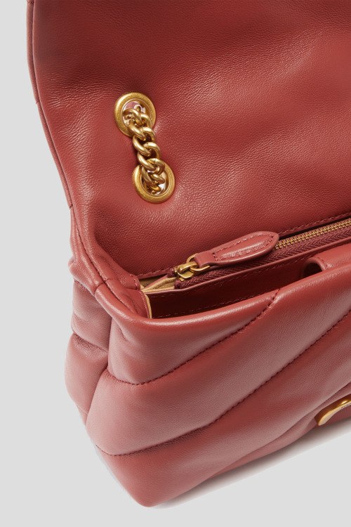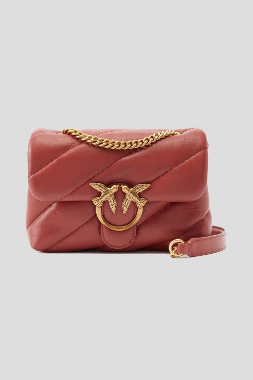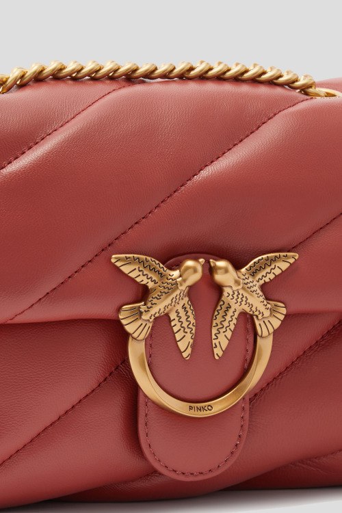 Детали: Женская терракотовая кожаная сумка кросс-боди Mini Love Bag Puff от Pinko (Пинко). Модель из гладкой кожи, стеганый дизайн, логотип Love Birds, золотистая фурнитура, застежка на магнит, одно отделение, цепочка на плечо. Размеры: высота: 15 см, ширина: 9 см, длина: 21 см
