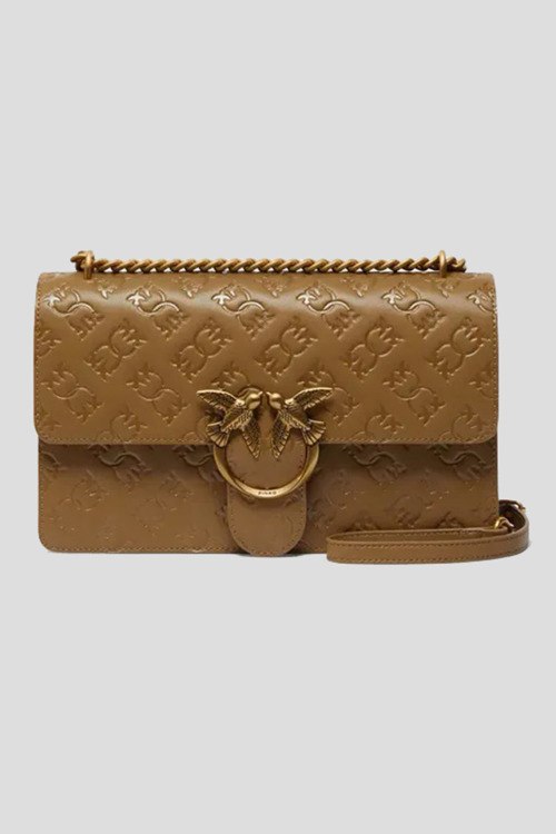 Детали: Женская оливковая кожаная сумка кросс-боди Love Bag Mini от Pinko (Пинко). Модель из гладкой кожи, тиснение с монограммой по всей поверхности, логотип Love Birds, золотистая фурнитура, застежка на магнит, одно отделение, цепочка на плечо. Размеры: длина - 27 см, высота - 8 см, ширина - 8 см, максимальная длина цепочки - 116 см