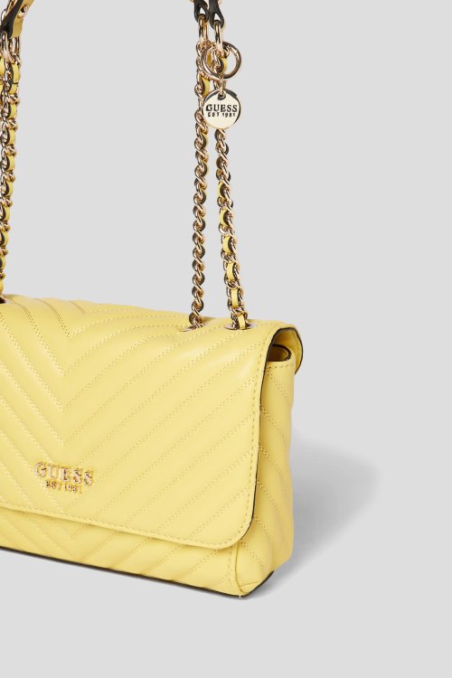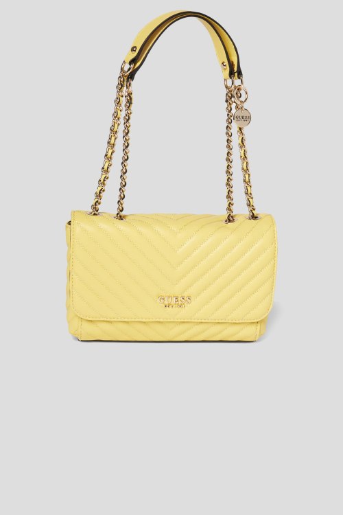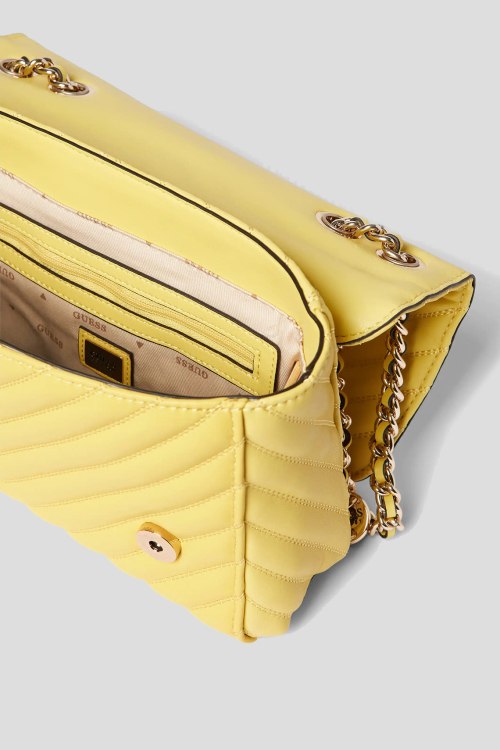 Детали: Женская желтая сумка кросс-боди из экокожи Keillah от Guess (Гесс). Стеганый дизайн, значок с логотипом, съемный фирменный брелок, застежка на магнит, одно внутреннее отделение, три внутренних кармана. Размер: 25х17,5x6 см, высота ручки/ремня: 32/55 см (производитель не комплектует пыльниками кошельки и маленькие сумки)