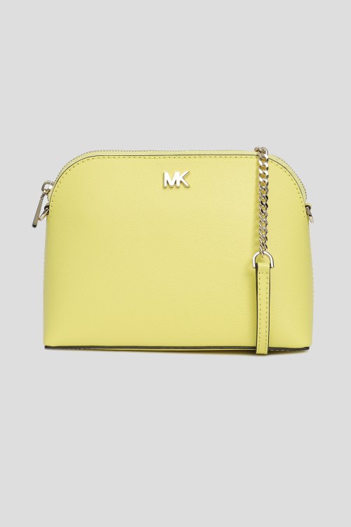 Женская желтая сумка кросс-боди из натуральной кожи от Michael Kors (Майкл Корс). Одно отделение на молнии, внутри карман на молнии, плечевой ремень с цепочкой, металлический логотип