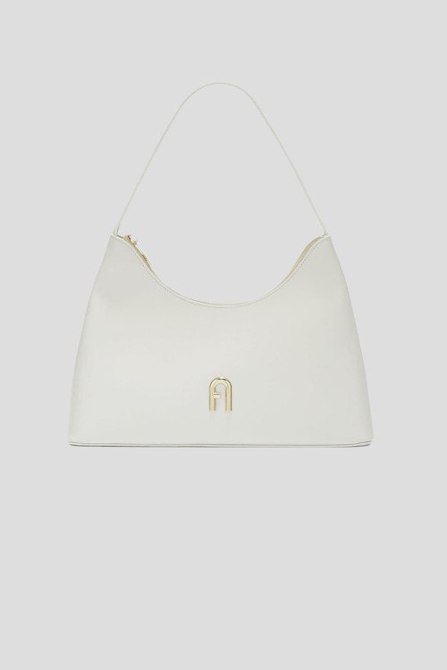 Детали: Женская белая сумка на плечо Diamante из натуральной кожи от Furla (Фурла). Одно отделение, застежка на молнию, внутренний карман ан молнии, металлический логотип бренда, плечевой ремень. Размер: 34x24x8,5 см