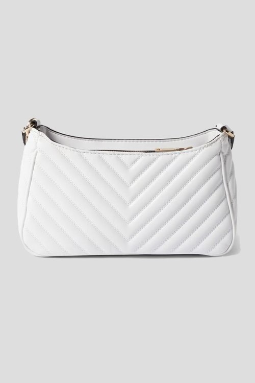 Детали: Женская белая сумка на плечо из экокожи Keillah от Guess (Гесс). Стеганый дизайн, значок с логотипом, съемный фирменный брелок, регулируемый плечевой ремень, застежка-молния, одно внутреннее отделение. Размер: 27x15,5x8,5 см, высота ручки/ремня: 16-26 см (производитель не комплектует пыльниками кошельки и маленькие сумки)