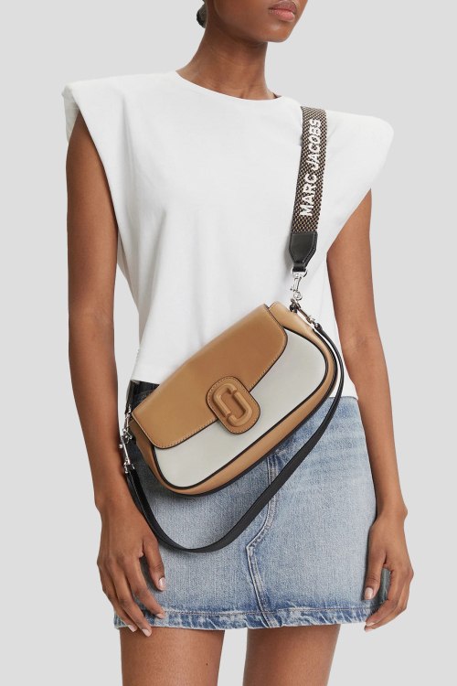 Детали: Женская бело-бежевая кожаная сумка на плечо The Colorblock Large Clover от Marc Jacobs (Марк Джейкобс). Модель из гладкой кожи, дизайн колор-блок, значок логотипа, два плечевых ремня, застежка на магнит, одно отделение. Размеры: 26 x 15 x 8 см. Максимальная длина ремня: 125 см