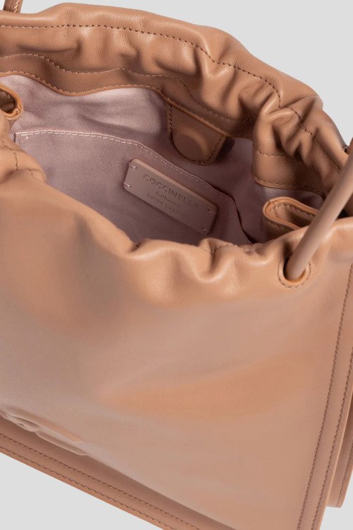 Детали: Женская бежевая кожаная сумка на плечо Dulse от Coccinelle (Кочинелле). Модель из гладкой кожи, логотип спереди, две ручки, затяжки по бокам, застежка на магнит, одно отделение. Размеры: 31 х 21 х 8 см