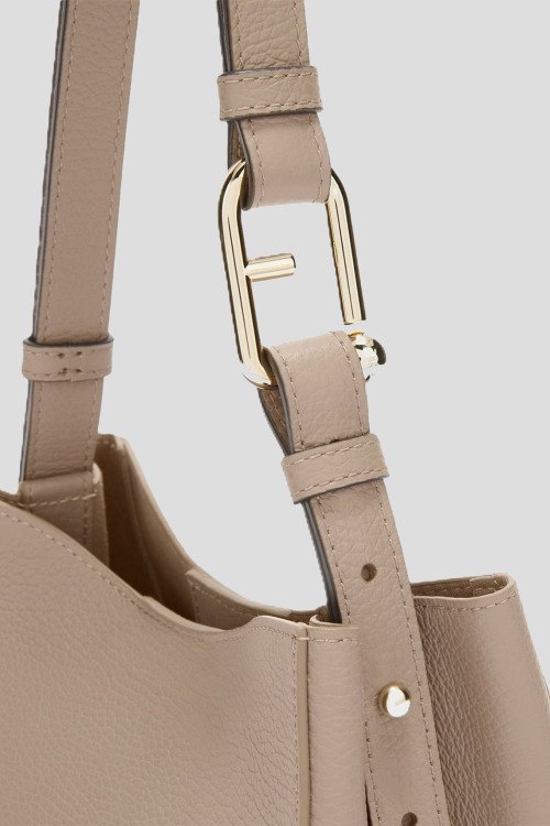Детали: Женская бежевая кожаная сумка на плечо Nuvola от Furla (Фурла). Модель из зернистой кожи, логотип спереди, золотистая фурнитура, застежка на магнит, одно отделение, плечевой ремень. Размер: 19,5 x 20 x 14 см
