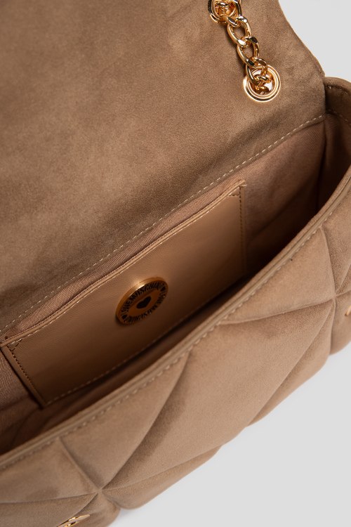 Детали: Женская бежевая сумкка кросс-боди из текстиля от Love Moschino (Лав Москино). Стеганый дизайн, одно отделение, застежка с клапаном на магнит, металлический логотип бренда, золотистая фурнитура, ручка цепочка. Размеры: 26 x 16 x 6.5 см, высота ручек: 28 cм