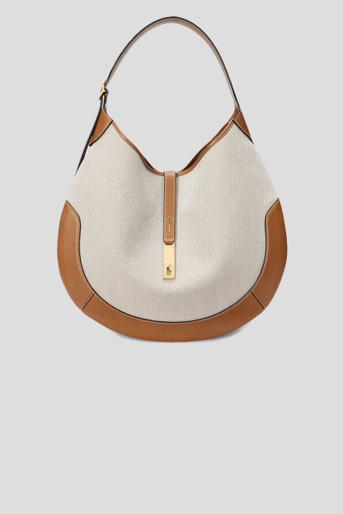 Детали: Женская бежевая сумка на плечо из хлопка от Polo Ralph Lauren (Поло Ральф Лорен). Одно отделение, застежка на кнопку, кожаная отделка, широкий регулируемый ремень, логотип бренда.