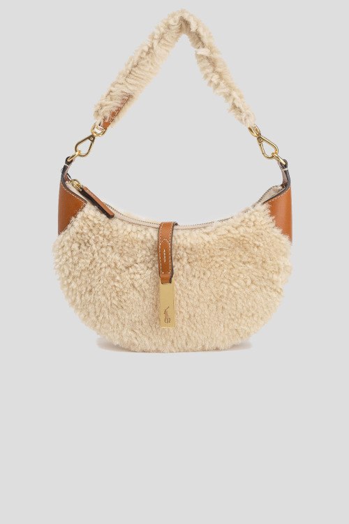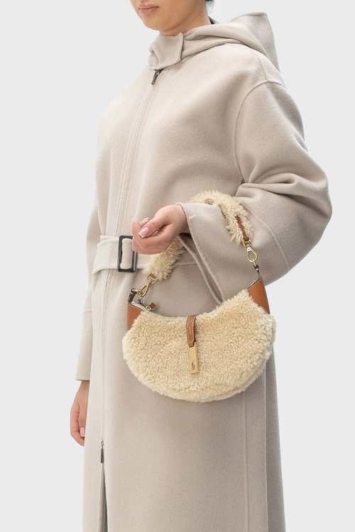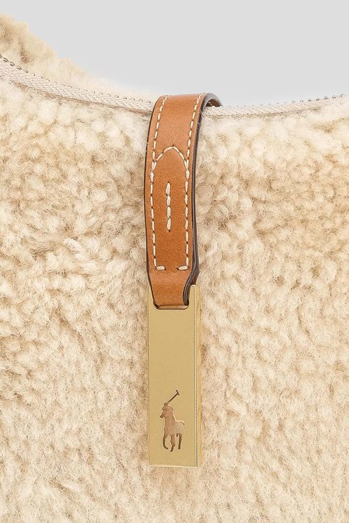 Детали: женская бежевая сумка на плечо из овечьей шерсти от Polo Ralph Lauren (Поло Ральф Лорен). Одно отделение, застежка на молнию, внутренний карман, съемная ручка, логотип бренда