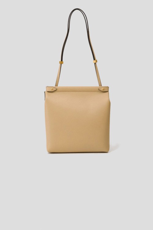 Женская бежевая кожаная сумка на плечо Teresa от Wandler (Вандлер). Модель из гладкой кожи, плечевой ремень, золотистая фурнитура, застежка на магнит, одно основное отделение. Размеры: ширина: 18 см, высота:16 см, глубина: 6 см