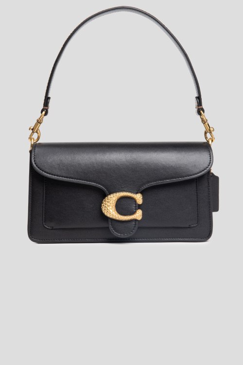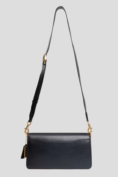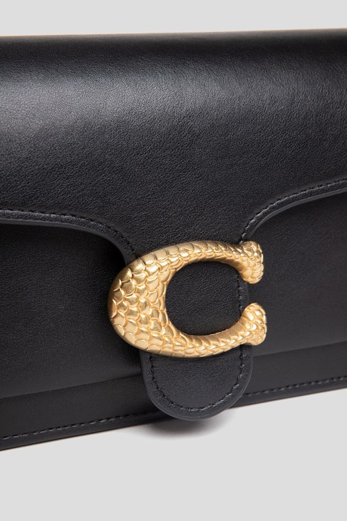 Детали: Женская черная кожаная сумка на плечо от Coach (Коуч). Модель из гладкой кожи, золотистая фурнитура, логотип спереди, вставки из питона, два плечевых ремня, застежка на магнит, одно внутреннее отделение, внутренний карман на молнии. Размеры: 26 х 13 х 6 см