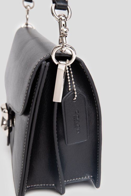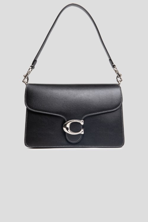 Детали: Женская черная кожаная сумка на плечо от Coach (Коуч). Модель из гладкой кожи, серебристая фурнитура, логотип спереди, застежка на магнит, одно отделение. Размеры: 27 х 17 х 10 см