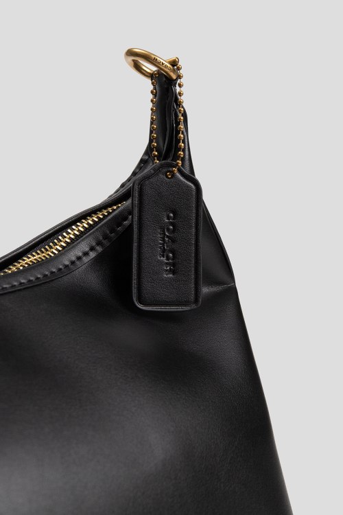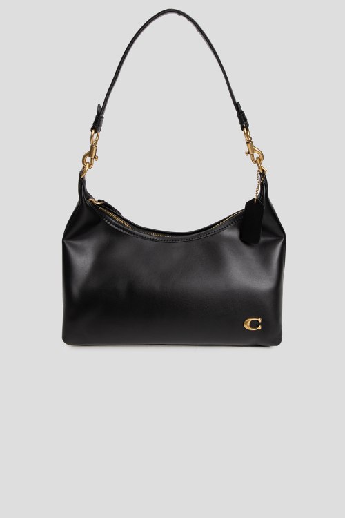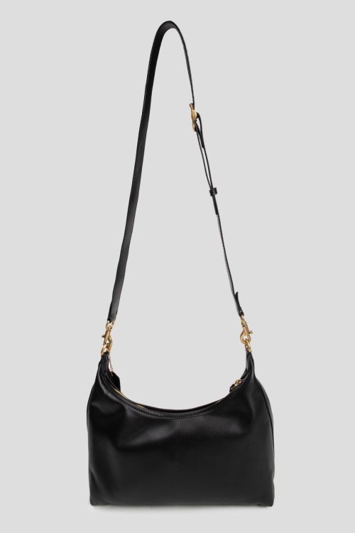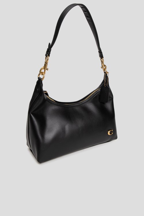 Детали: Женская черная кожаная сумка на плечо Juliet от Coach (Коуч). Модель из гладкой кожи, значок логотипа, золотистая фурнитура, два плечевых ремня, застежка-молния, одно отделение. Размеры: 30 х 17 х 8 см