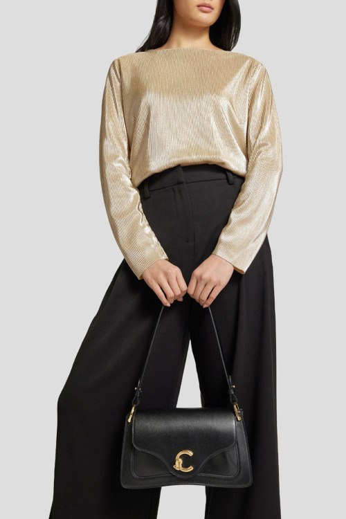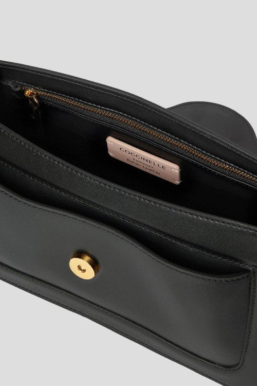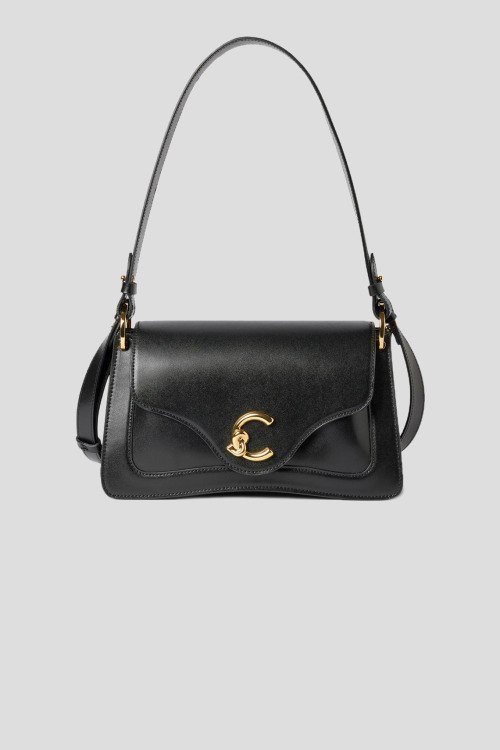 Детали: Женская черная сумка на плечо С-Ме из натуральной кожи от Coccinelle (Кочинелле). Два отделения, внутренний карман на молнии, дизайн с клапаном, металлическая фурнитура, логотип бренда, верхняя ручка, плечевой ремень. Измерения: глубина: 10 cм, высота: 16 cм, ширина у основания: 28 cм