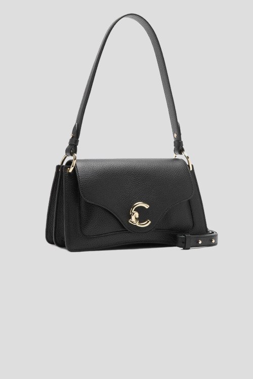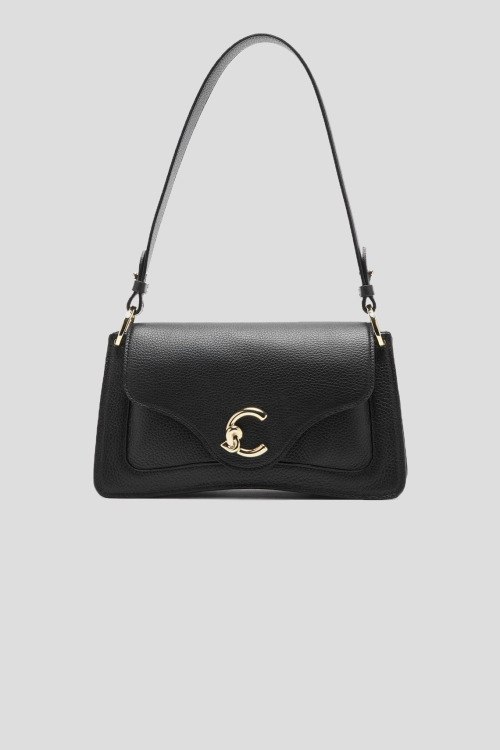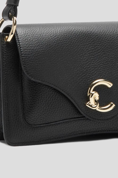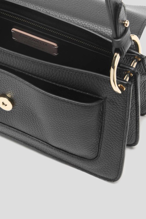 Детали: Женская черная сумка на плечо из натуральной кожи от Coccinelle (Кочинелле). Одно отделение, дизайн с клапаном, внутренний карман на молнии, металлическая фурнитура золотистого цвета, внешний карман, верхняя ручка, съемный плечевой ремень. Размеры: 25 см x 16 см x 9,5 см