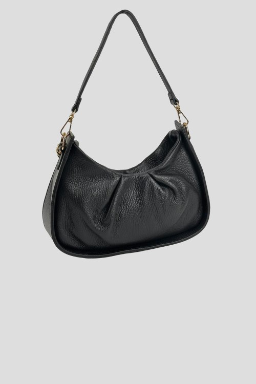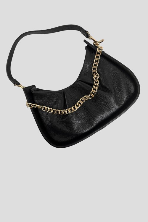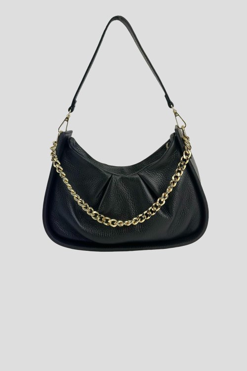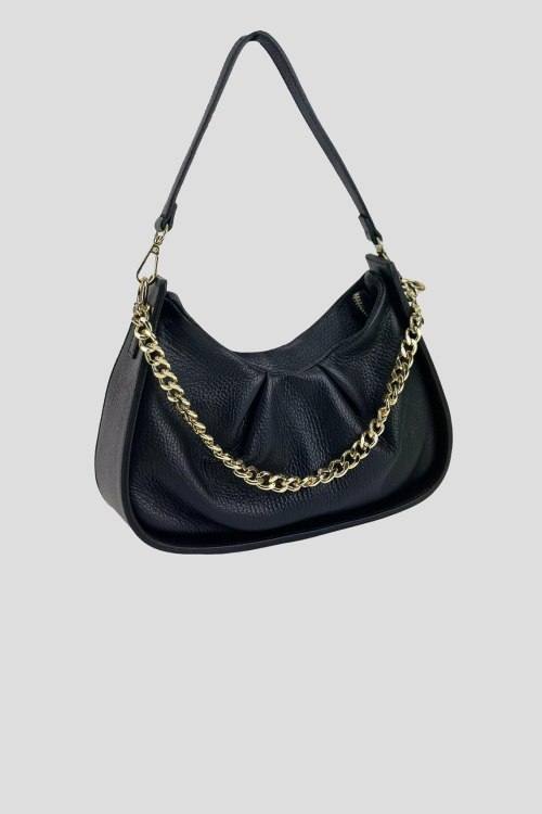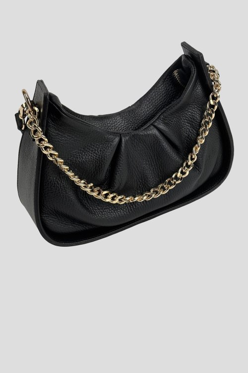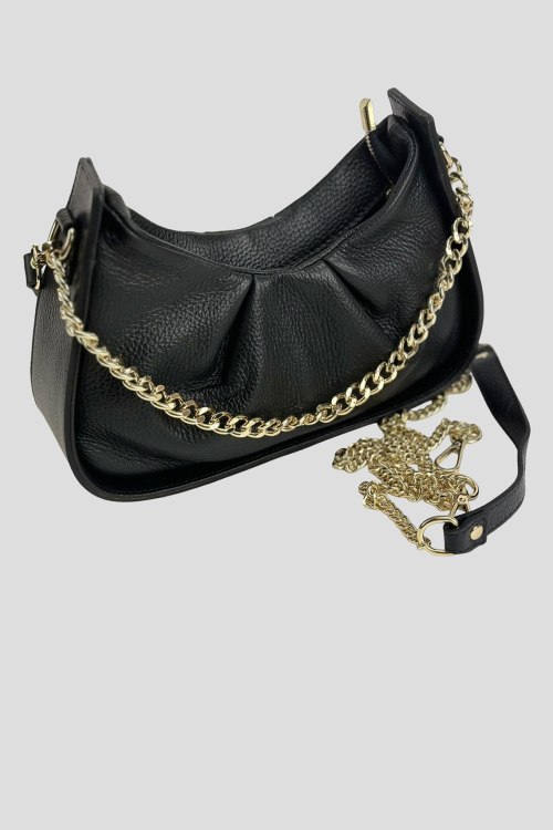 Детали: Женская черная сумка на плечо из натуральной кожи от Firenze Italy (Фирензе Итали). Одно отделение, застежка на молнию, внутренний карман на молнии, одна кожаная ручка, другая ручка-цепочка золотистого цвета. Измерения:26 x 13(16) x 8 см