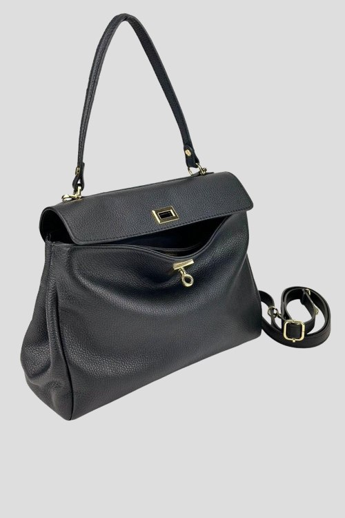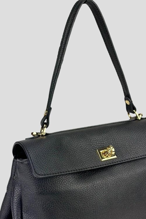 Детали: Женская черная сумка на плечо из натуральной кожи от Firenze Italy (Фирензе Итали). Два отделения, металлическая фурнитура, верхняя ручка, съемный плечевой ремень. Измерения: 31(28) x 22 x 9 см