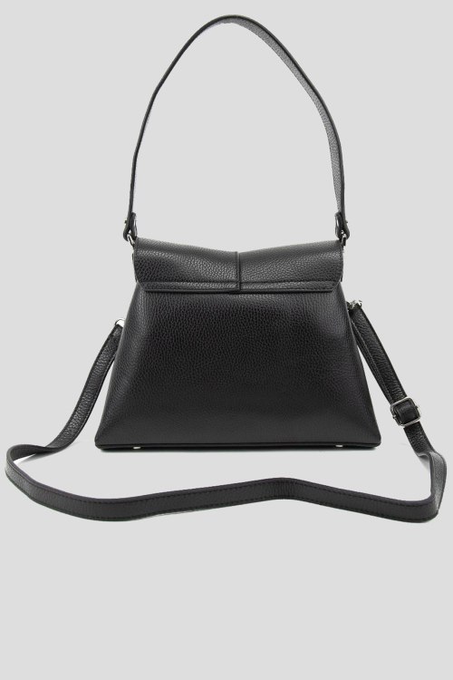 Детали: Женская черная сумка на плечо из натуральной кожи от Firenze Italy (Фирензе Итали). Два отделения на молнии, дизайн с клапаном на кнопке, съемная ручка, регулируемый плечевой ремень. Измерения: 28(19) x 19 x 11 см