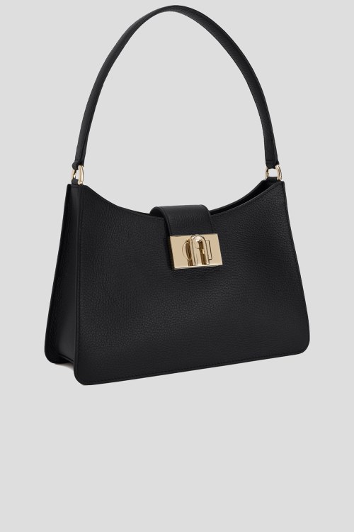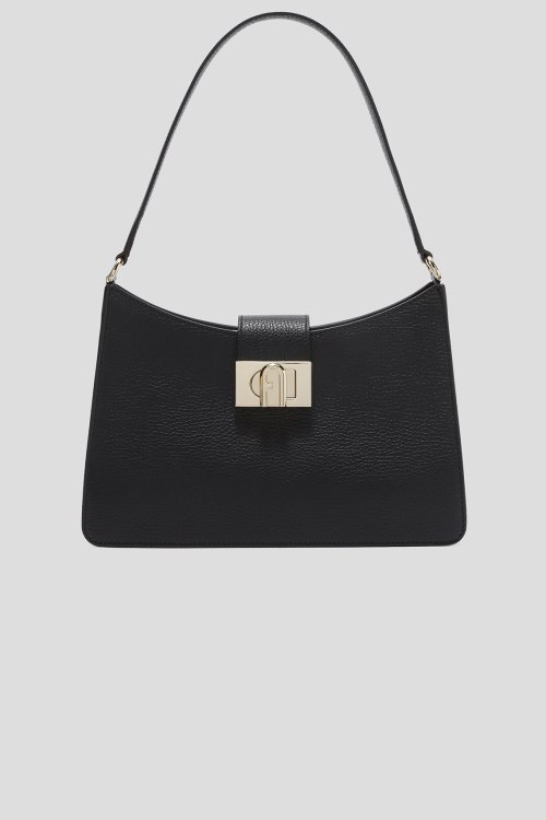 Детали: Женская черная кожаная сумка на плечо 1927 от Furla (Фурла). Модель из зернистой кожи, значок логотипа, золотистая фурнитура, застежка на защелку, круглая ручка, одно отделение. Размеры: 28 x 19 x 9 см