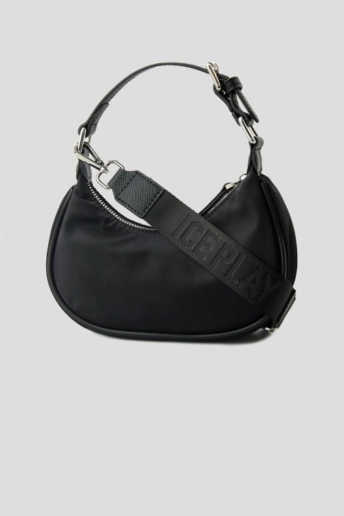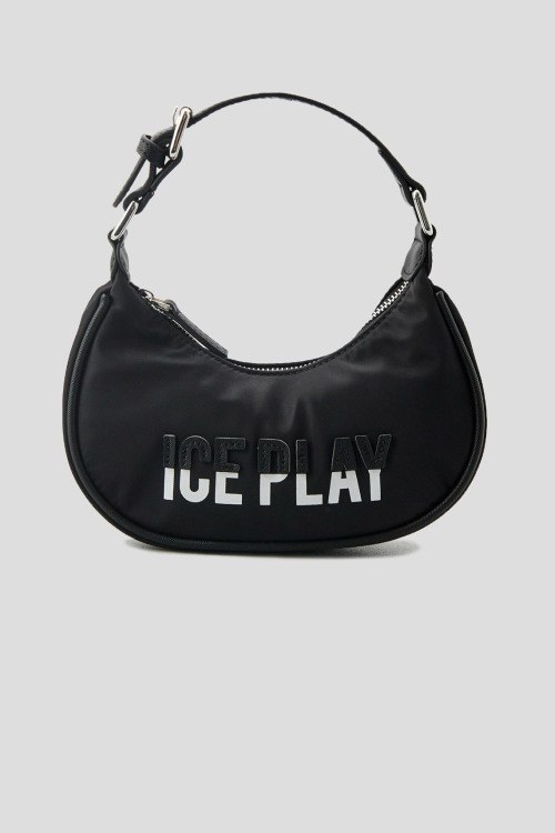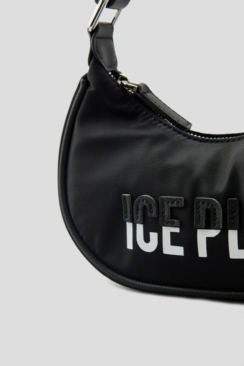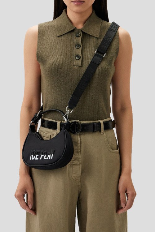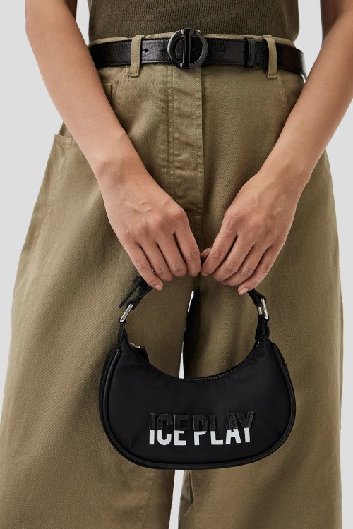 Детали: Женская черная текстильная сумка на плечо от Ice Play (Айс Плей). Логотип спереди, серебристая фурнитура, круглая ручка, съемный плечевой ремень, застежка-молния, одно отделение. Размеры: высота 14 см, ширина 23 см, ширина дна 7см, длина ручек 40 см, длина плечевого ремня 120 см
