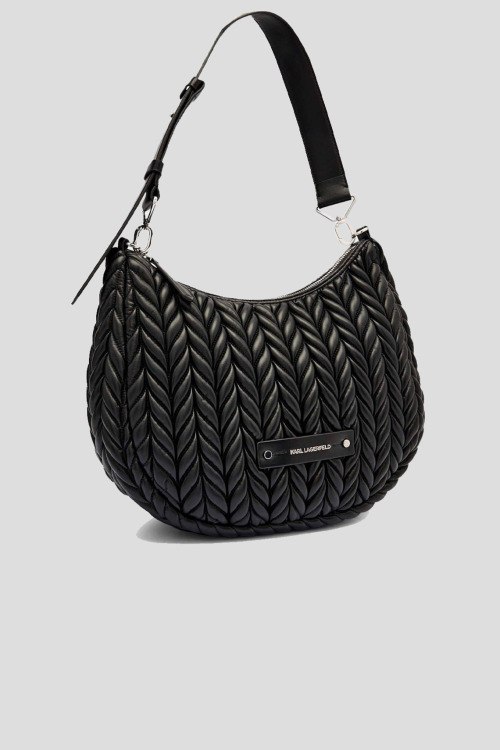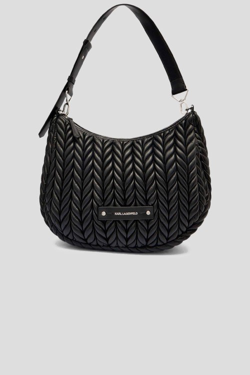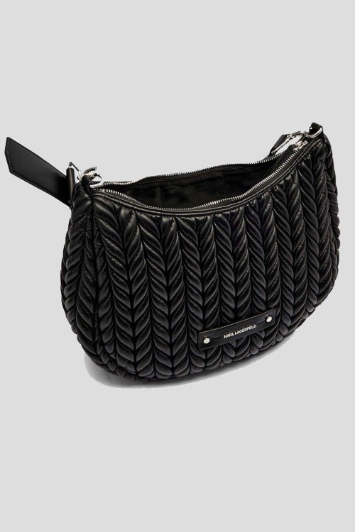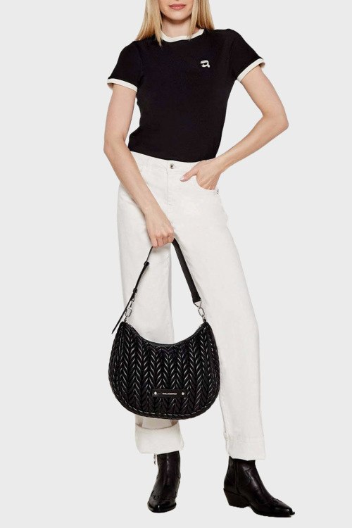 Детали: Женская черная сумка на плечо из экокожи K/Weave от Karl Lagerfeld (Карл Лагерфельд). Модель из гладкой кожи, стеганый дизайн, нашивка с логотипом, серебристая фурнитура, застежка-молния, одно отделение, регулируемый плечевой ремень. Размеры: 32 х 27 х 12 см
